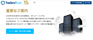 *現在TradersTrustウェブサイトトップページには「サーバー移行後にMT4へログイン頂く場合は、新規に割り当てられたサーバー情報へアップデート頂けますよう…」と記載されています。